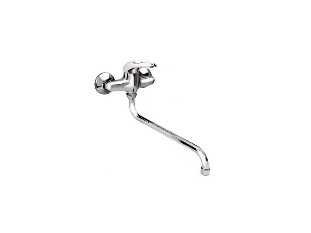 Páková drezová stenová vodovodná batéria s trubkovým 30cm "S" výtokovým ramenom.