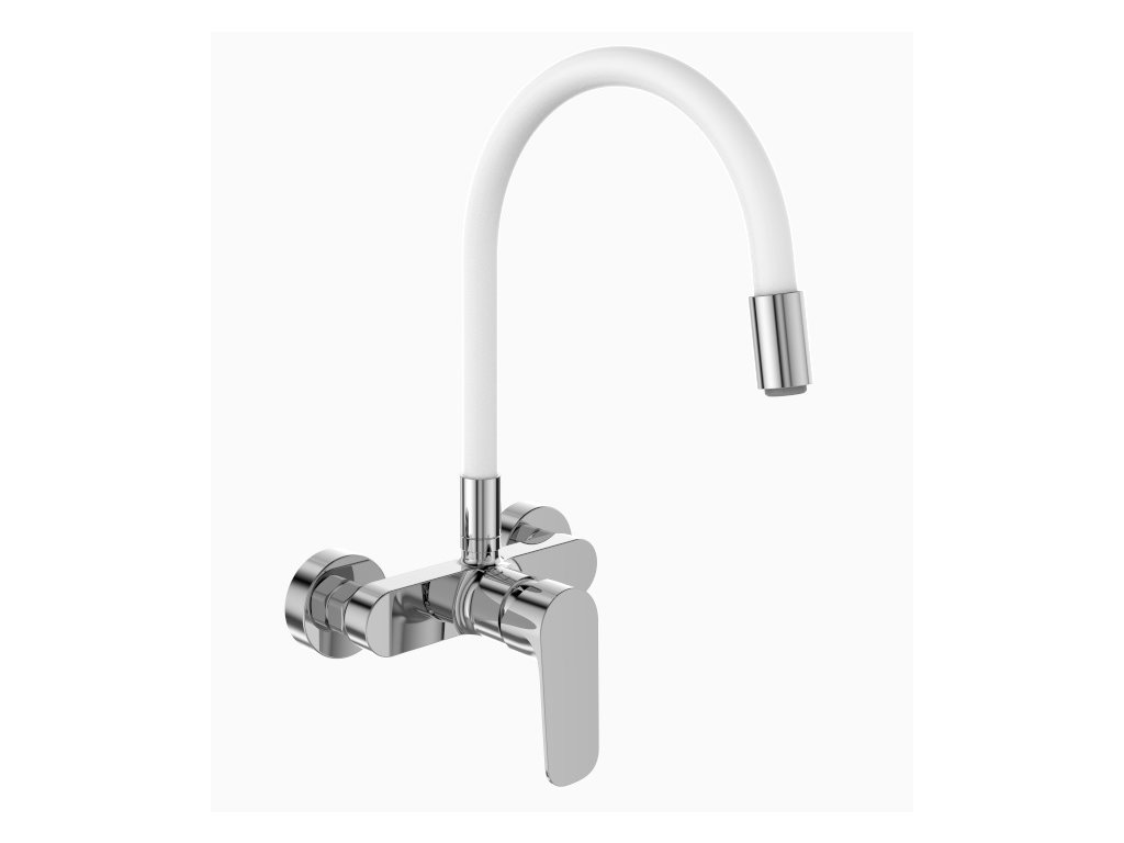Drezová batéria nástenná DAKOTA, horné flexibilné rameno, biela-chróm