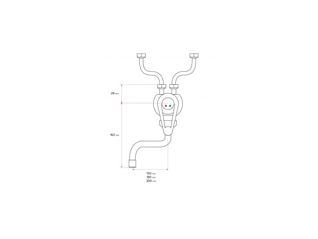 Drezová batéria SLIM pre zásobníkové ohrievače vody, ramienko 18cm