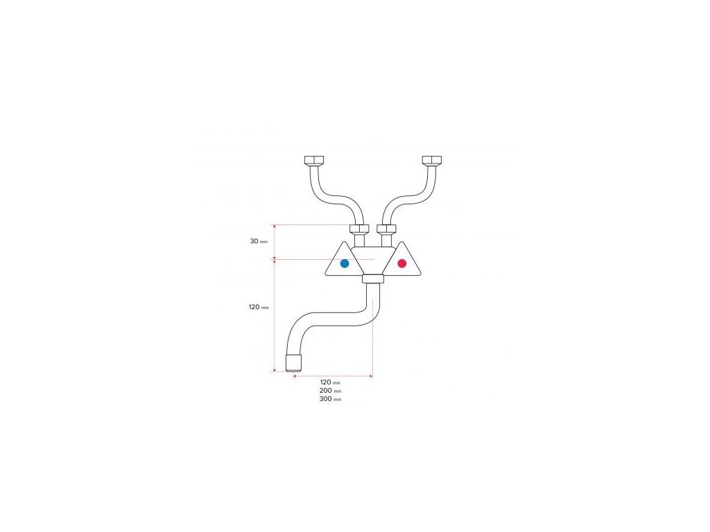Trojcestná nízkotlaková stenová batéria SLIM značky Hakl, s hadicami, s klasickým - kohútikovým ovládaním.