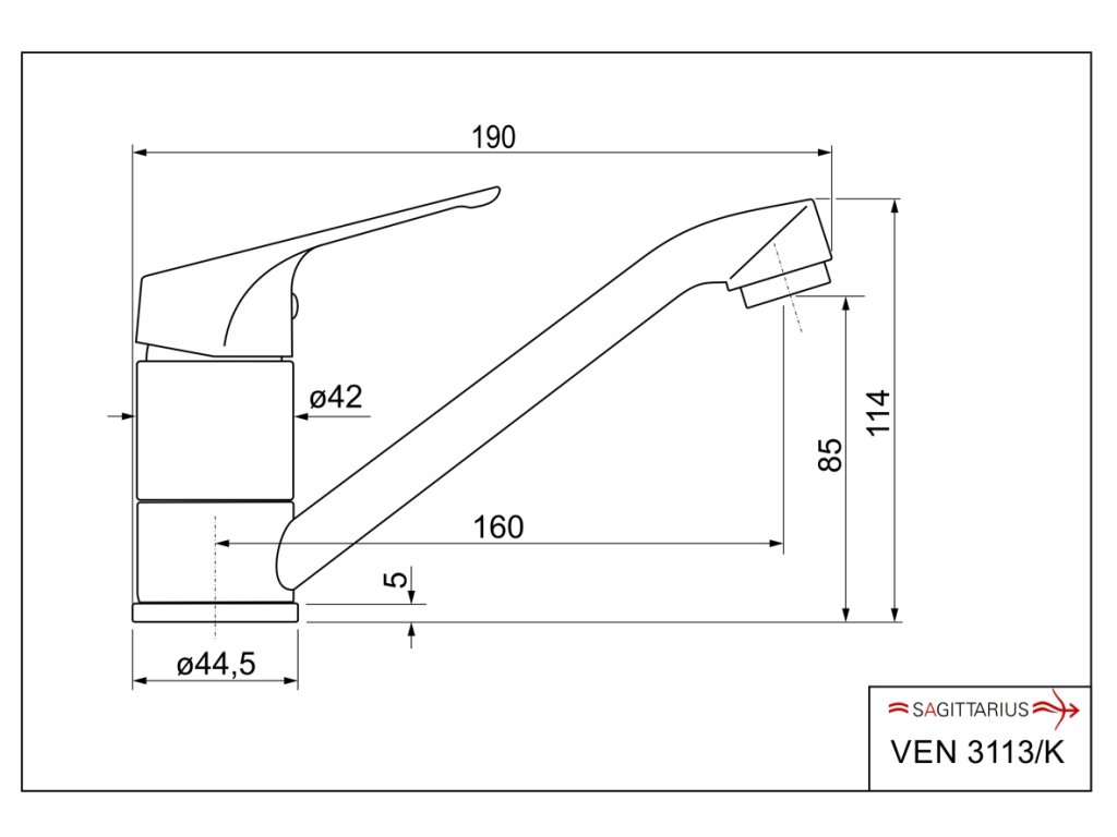 Hľadáte batériu pre váš drez či umývadlo, ktorá skĺbi funkčnosť s moderným dizajnom, bez zbytočného pútania pozornosti? Umývadlová či drezová batéria VENUS značky Sagittarius je presne tým, čo potrebujete. Kratšie ramienko je otočné o plných 360° , čo vám poskytne maximálnu flexibilitu pri umývaní riadu alebo plnení väčších nádob. Čisté línie batérie dodajú vašej kuchyni elegantný a nadčasový vzhľad. Chróm je nielen esteticky príjemný, ale i jednoduchý na údržbu: odoláva odtlačkom prstov, ľahko sa udržuje v čistote a tak si svoj lesk zachová po dlhé roky.