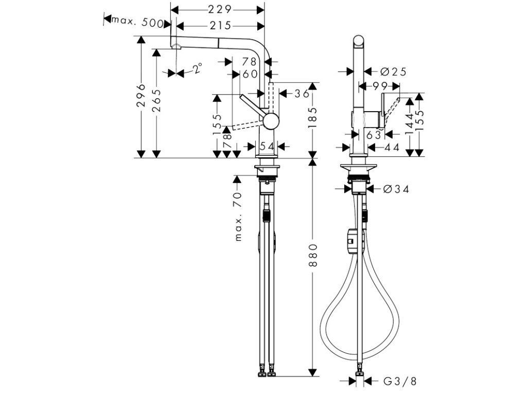 Drezová batéria TALIS M54 od značky Hansgrohe je dokonalým spojením funkčnosti a štýlu. Otočné ramienko v tvare „L“ možno nastaviť v štyroch uhloch (60°, 110°, 150° alebo 360°), čo z nej robí ideálneho pomocníka aj do náročnejších kuchýň. Výsuvný výtok Pull-Out rozširuje pracovný priestor pri dreze – vodu tak dostanete presne tam, kde ju potrebujete. Technológia ComfortZone 270 zabezpečuje priestranný, pohodlný a intuitívny spôsob ovládania. Prietok vody je laminárny – čistý, tichý, bez zbytočného rozstreku.