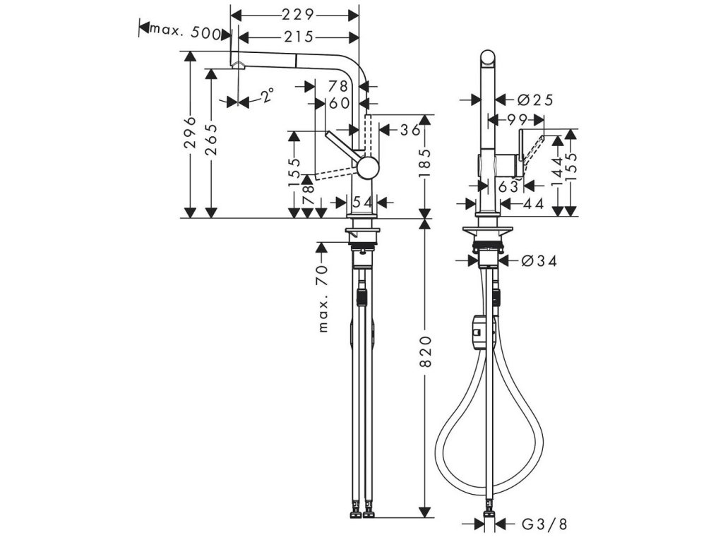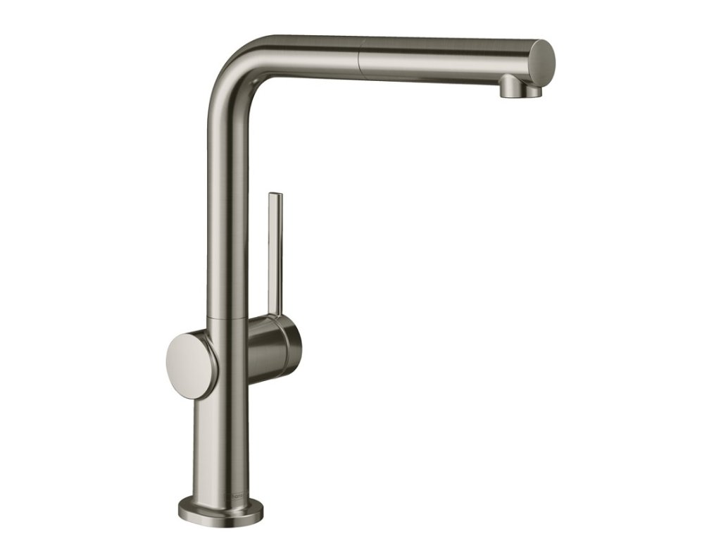 Kuchynská batéria TALIS M54 od Hansgrohe v sebe spája moderný dizajn s maximálnou praktickosťou. Otočné ramienko v elegantnom tvare „L“ je nastaviteľné v štyroch pevných polohách (60°, 110°, 150° alebo 360°), takže sa ľahko prispôsobí akémukoľvek rozloženiu kuchyne. Výsuvný výtok Pull-Out výrazne zvyšuje dosah a flexibilitu pri práci – voda sa dostane tam, kde ju práve potrebujete. Vďaka technológii ComfortZone 270 si užijete komfortné ovládanie a dostatok priestoru. Laminárny prúd vody je tichý, presný a bez rozstrekovania.