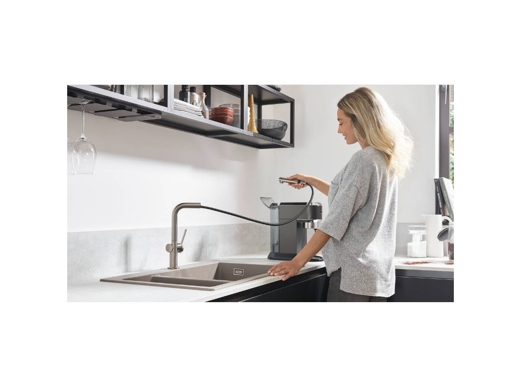 Výsuvný výtok Pull-Out zaistí viac pohodlia a priestoru pre pohyb: rozširuje akčný rádius okolo kuchynského drezu a dodá vodu presne tam, kde je potrebná - a to jediným pohybom.