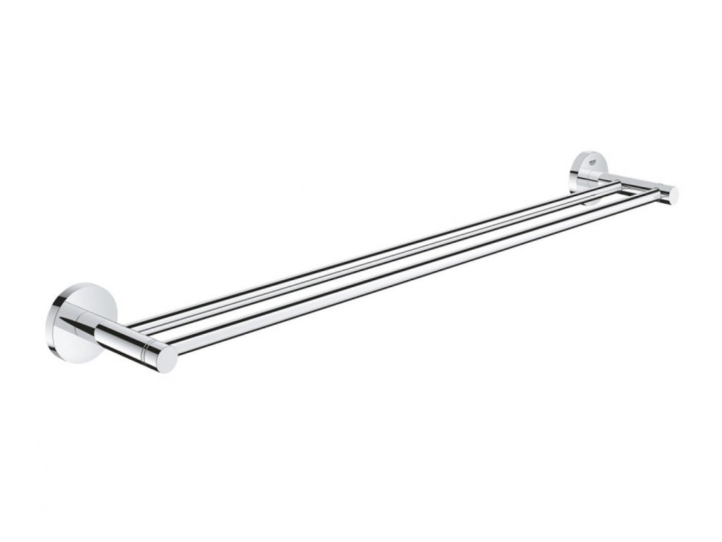 Nástenný kovový dvojramenný držiak na uteráky Essentials značky Grohe. So skrytým upevnením.