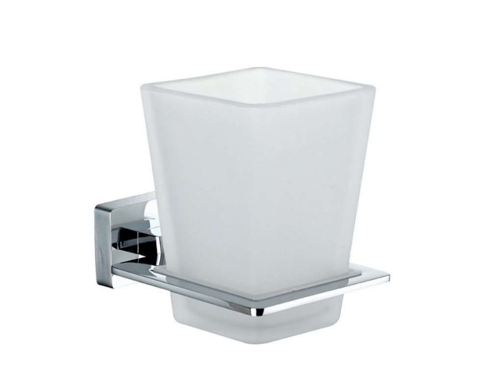 Pohár na zubné kefky ENZO s držiakom, chróm-sklo