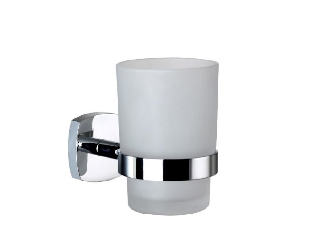 Pohár na zubné kefky LUCA s držiakom, chróm-sklo