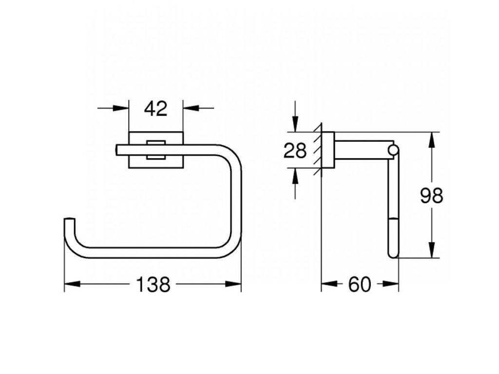 Kovový nástenný držiak toaletného papiera Essentials Cube značky Grohe. Bez krytu. So skrytým upevnením.