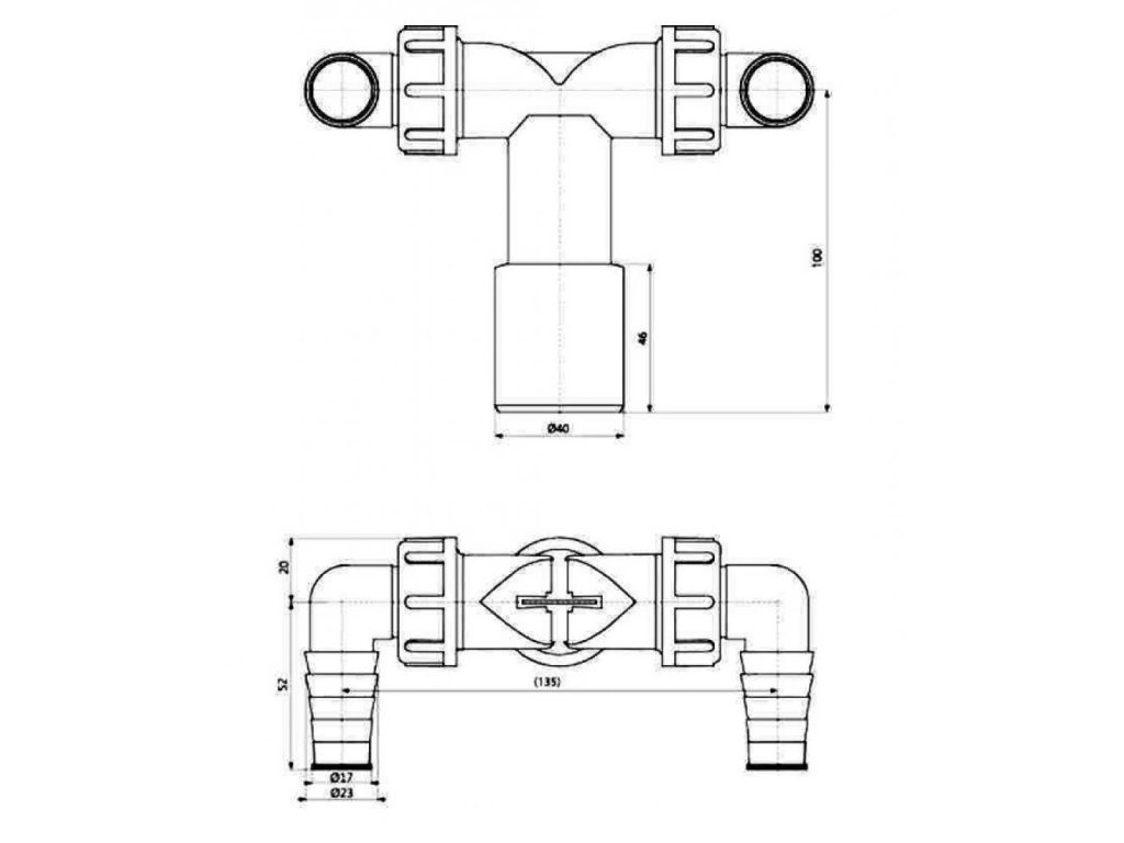 Dvojité kolienko DN40/32 / 17–23 so spätnými klapkami