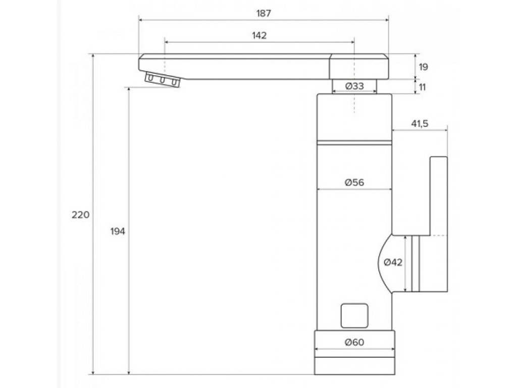 Celková dĺžka výtokového ramienka: 187mm.