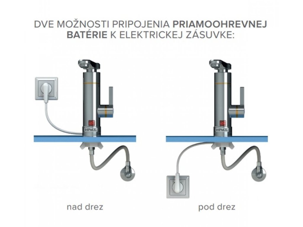 Bezproblémová montáž na prívod studenej vody, pripojenie k elektrickej zásuvke nad drez alebo pod drez.