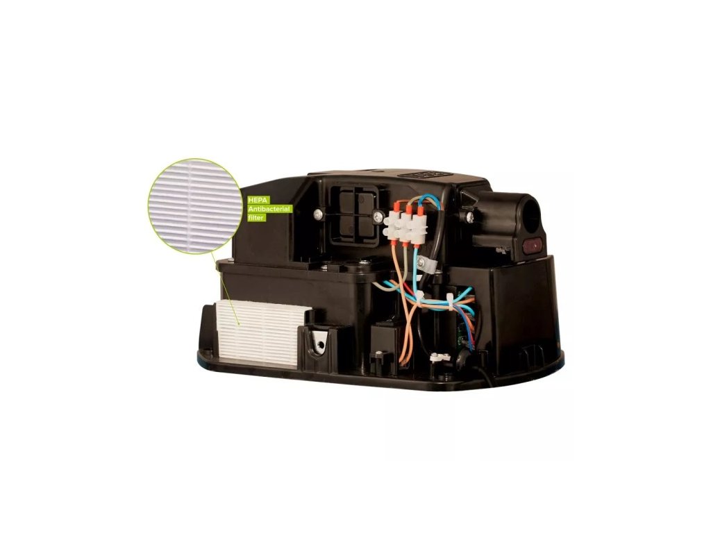 hygienická prevádzka je zaručená vďaka dvom antibakteriálnym HEPA filtrom a zabudovanému UV svetlu s dezinfekčným žiarením.