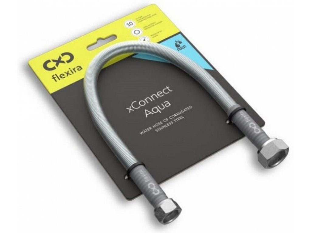 Pripojovacia toaletná hadica z nerezového vlnovca značky Flexira, xConnect Aqua G3/8”–G3/8”