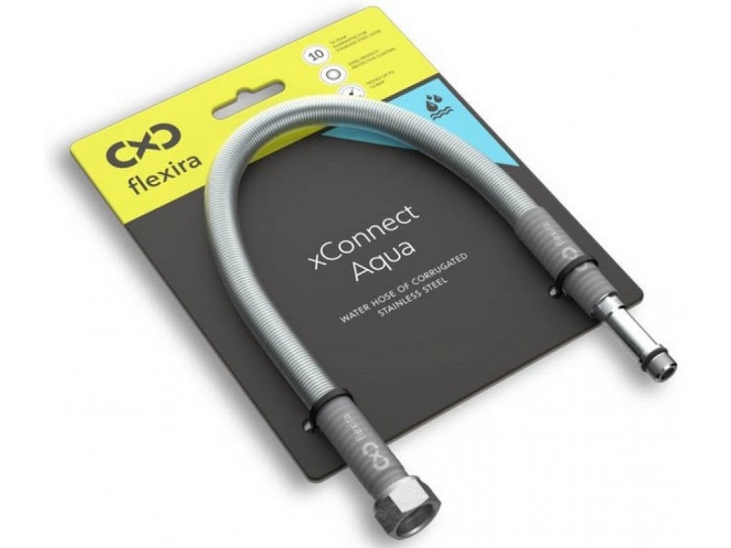 Pripojovacia hadica z nerezového vlnovca značky Flexira, pre vodovodné batérie, xConnect Aqua Plus G3/8-M10*1 D.