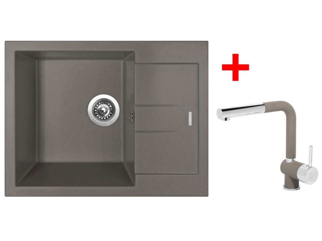 Granitový drez Sinks AMANDA 650 Truffle + drezová batéria MIX 3 P GR