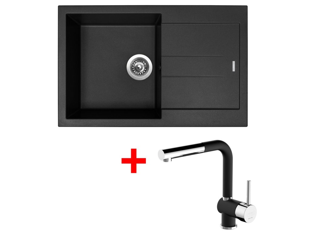 Granitový drez Sinks AMANDA 780 Pureblack + batéria MIX 3 P Nanoblack