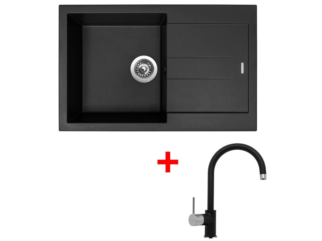 Granitový drez Sinks AMANDA 780 Pureblack + drezová batéria VITALIA GR