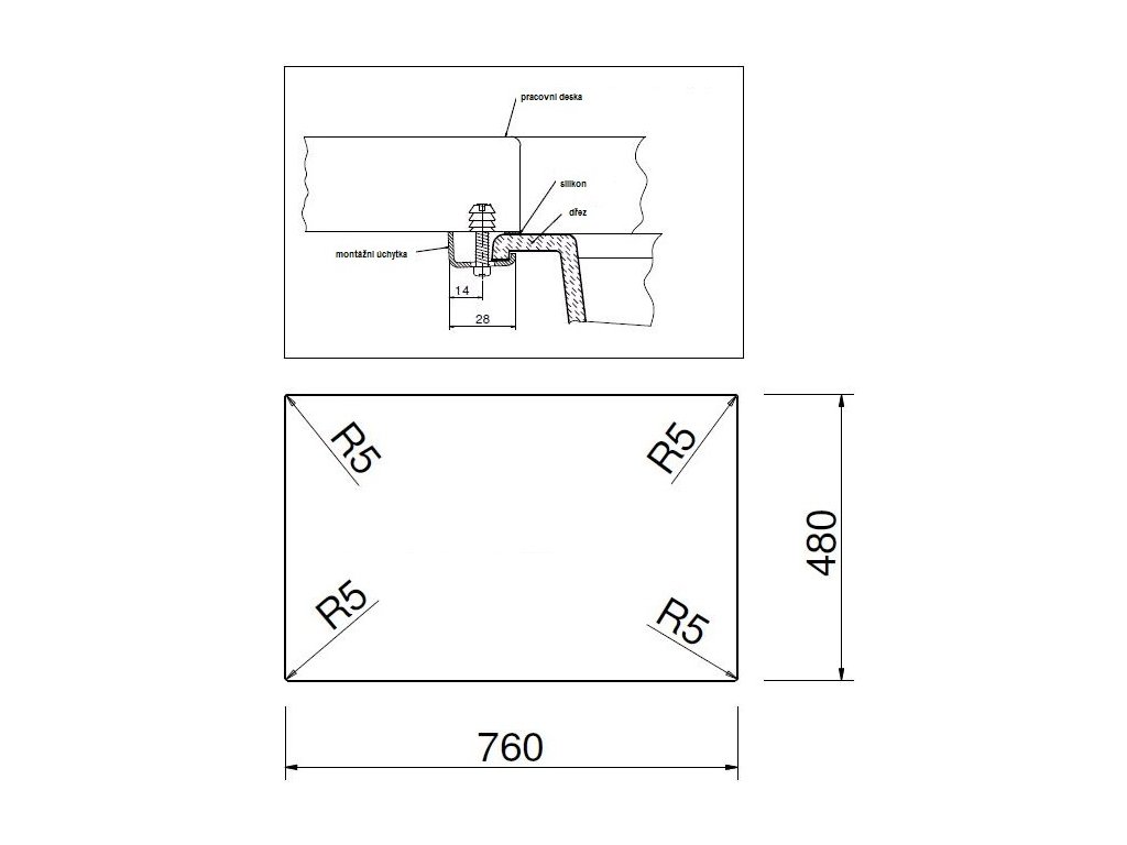 • vonkajšie rozmery drezu: 780 x 500 mm;