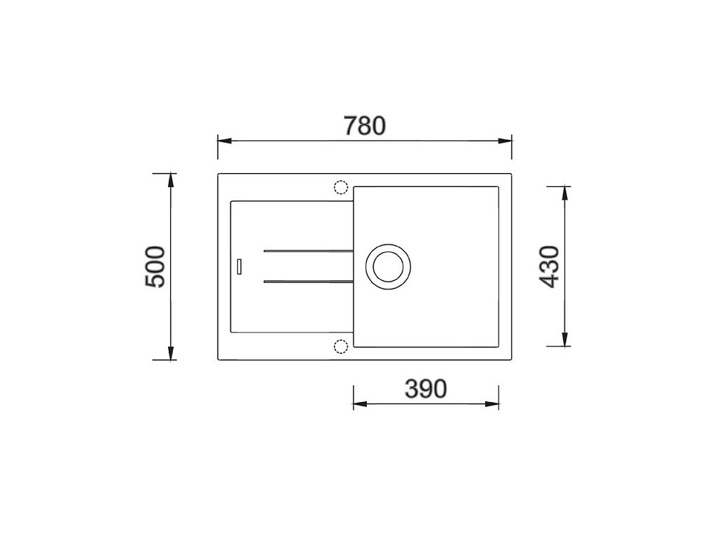 • vonkajšie rozmery drezu: 780 x 500 mm;
