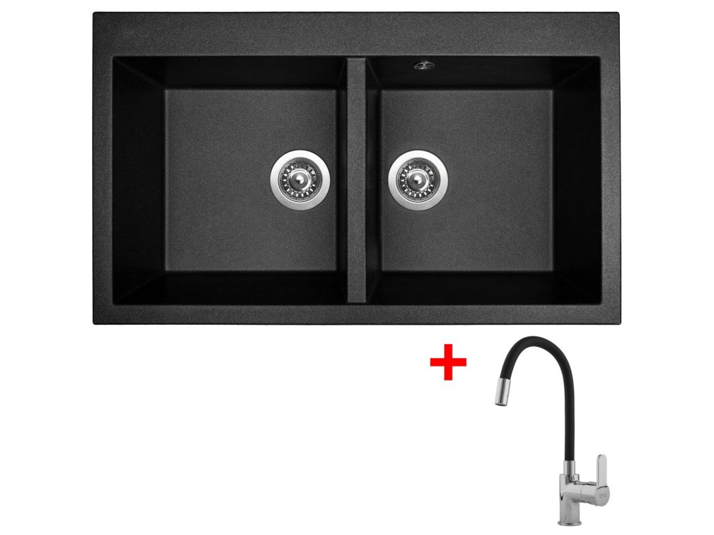 Granitový drez Sinks AMANDA 860 DUO Metalblack + batéria FLEXIA