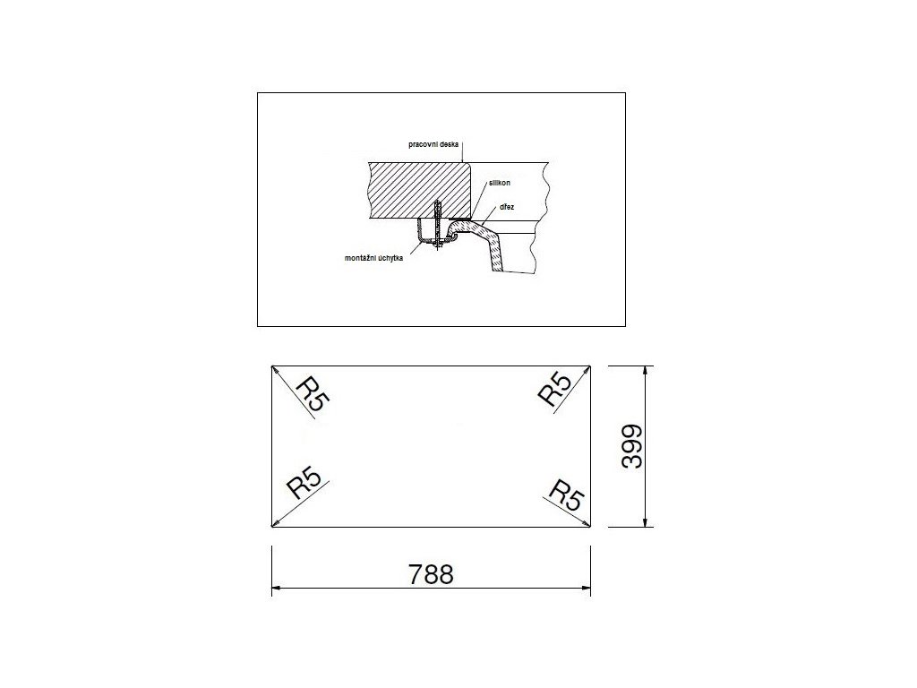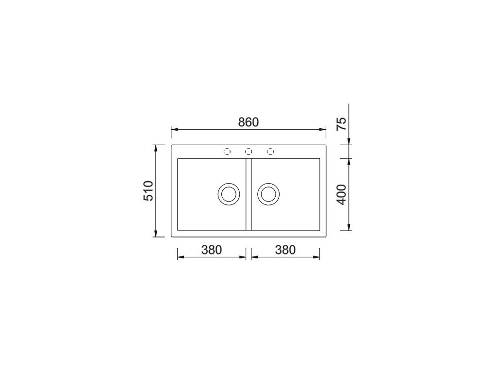 • vonkajšie rozmery drezu: 860 x 510 mm;