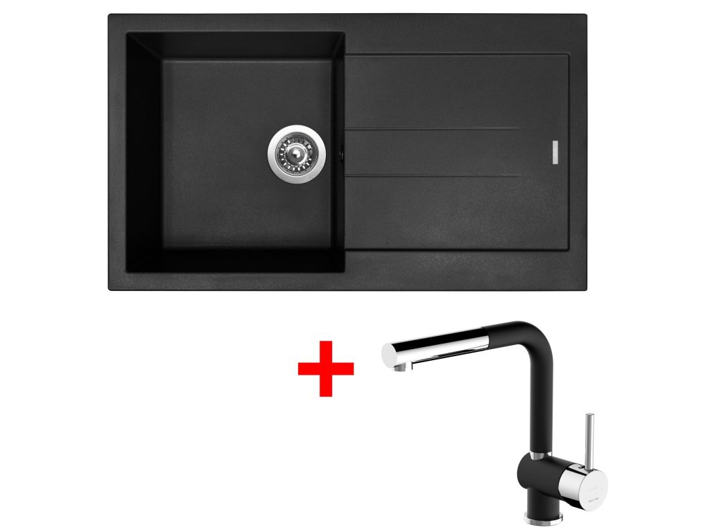 Granitový drez Sinks AMANDA 860 Pureblack + drezová batéria MIX 3 P GR