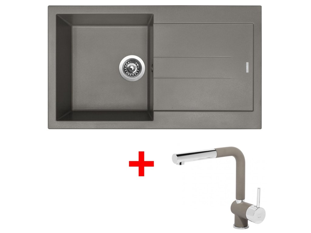 Granitový drez Sinks AMANDA 860 Truffle + drezová batéria MIX 3 P GR