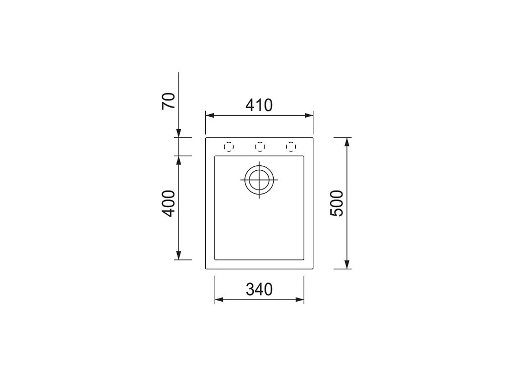 Vonkajšie rozmery drezu sú: 410 x 500 mm.