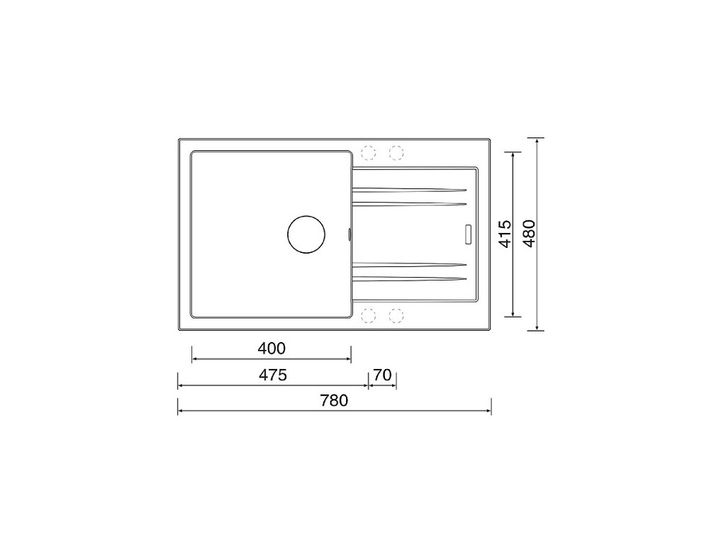 Vonkajšie rozmery drezu: 780 x 480 mm