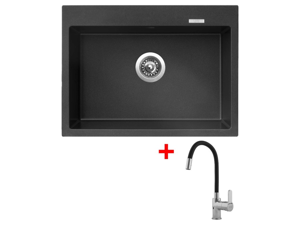 Granitový drez Sinks MAXIMO 680 Metalblack + drezová batéria FLEXIA