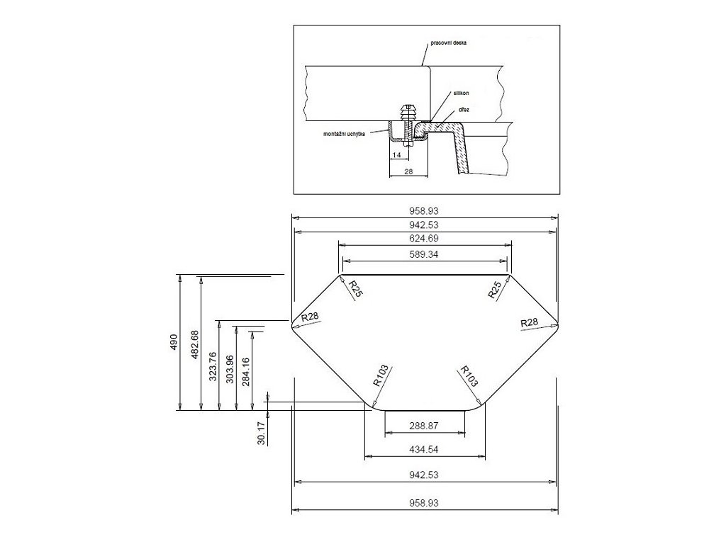 • vonkajšie rozmery drezu: 980 x 510 mm;