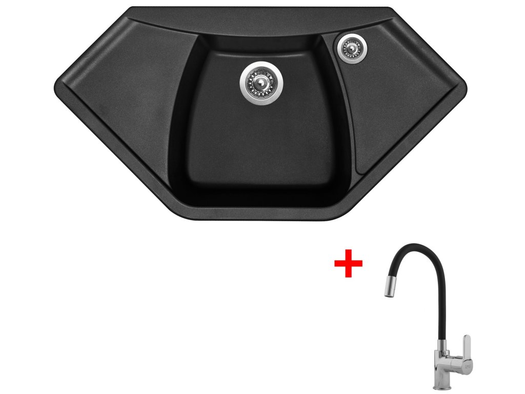 Granitový drez Sinks NAIKY 980 Pureblack + drezová batéria FLEXIA
