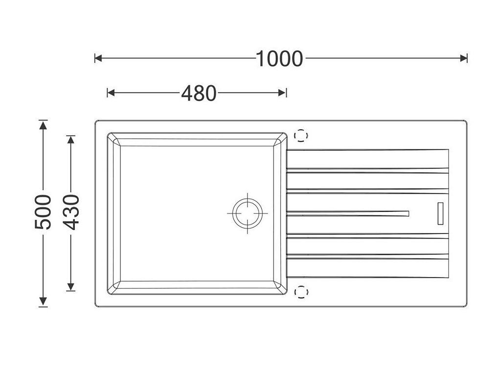 Vonkajšie rozmery drezu: 1000 x 500 mm