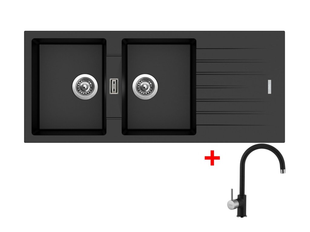 Granitový drez Sinks PERFECTO 1160 DUO Metalblack + batéria VITALIA GR
