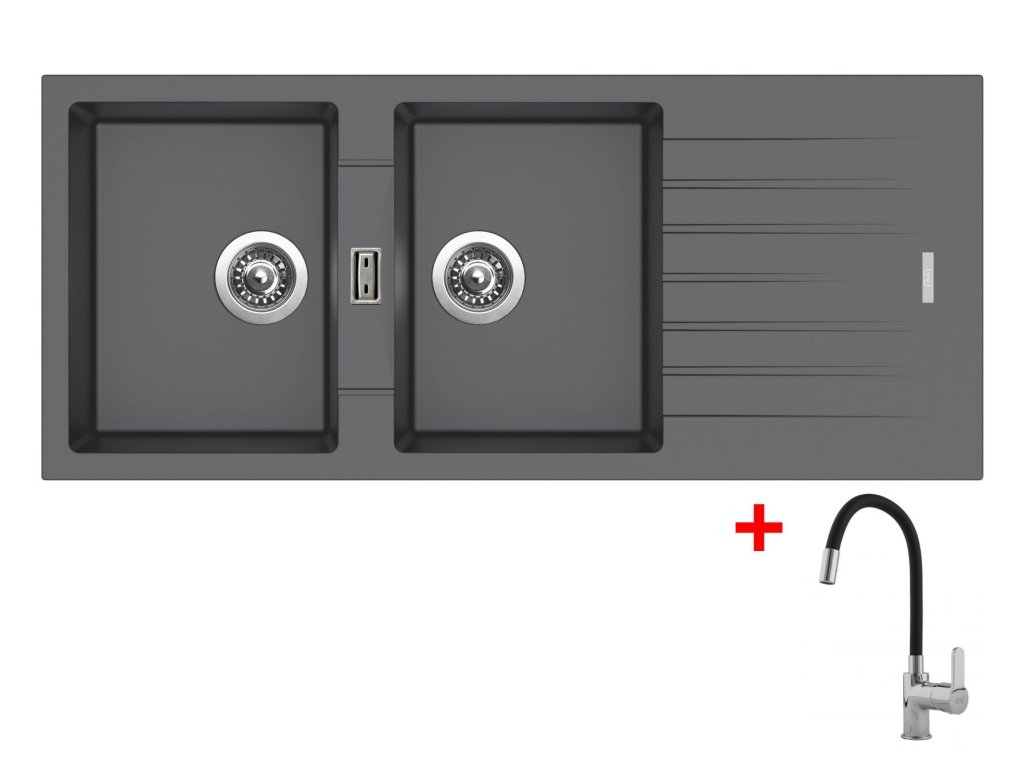 Granitový drez Sinks PERFECTO 1160 DUO Titanium + batéria FLEXIA