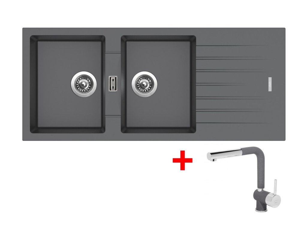 Granitový drez Sinks PERFECTO 1160 DUO Titanium + batéria MIX 3 P GR