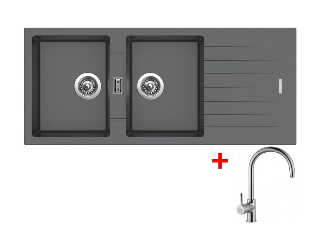 Granitový drez Sinks PERFECTO 1160 DUO Titanium + batéria VITALIA