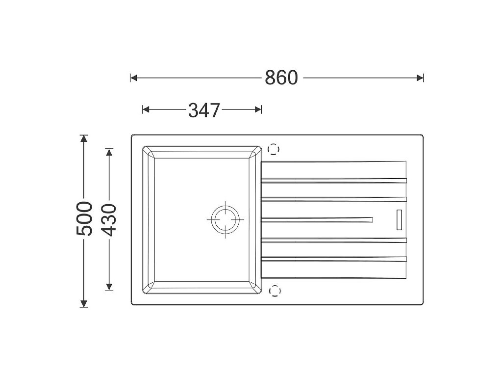 • vonkajšie rozmery drezu: 860 x 500 mm;