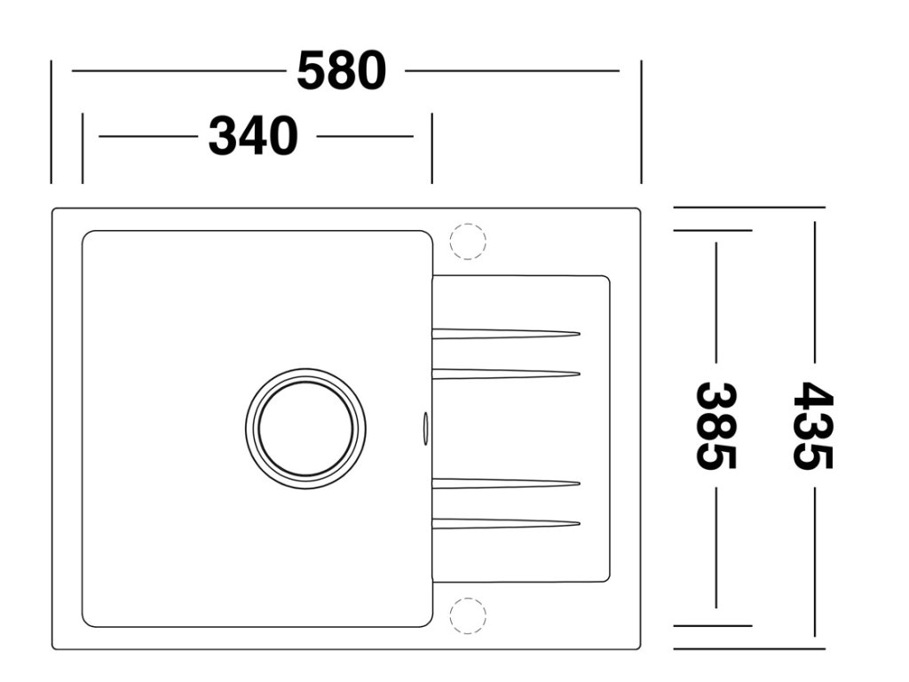 • vonkajšie rozmery drezu sú: 580 x 435 mm.