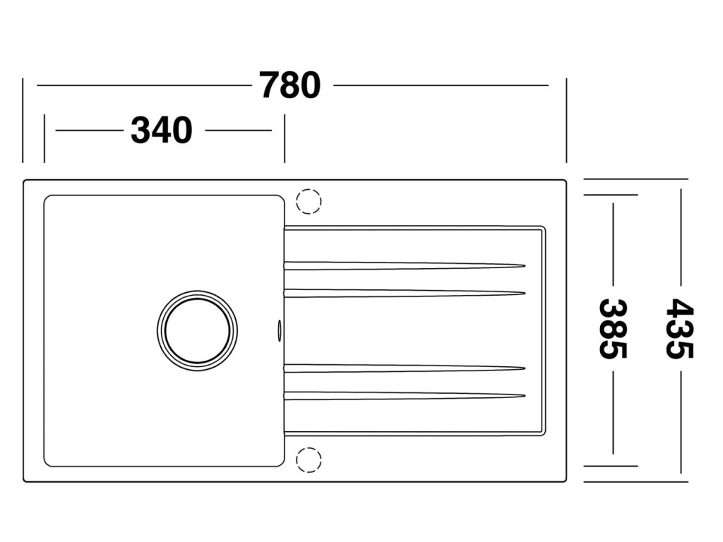Vonkajšie rozmery drezu sú: 780 x 435 mm.