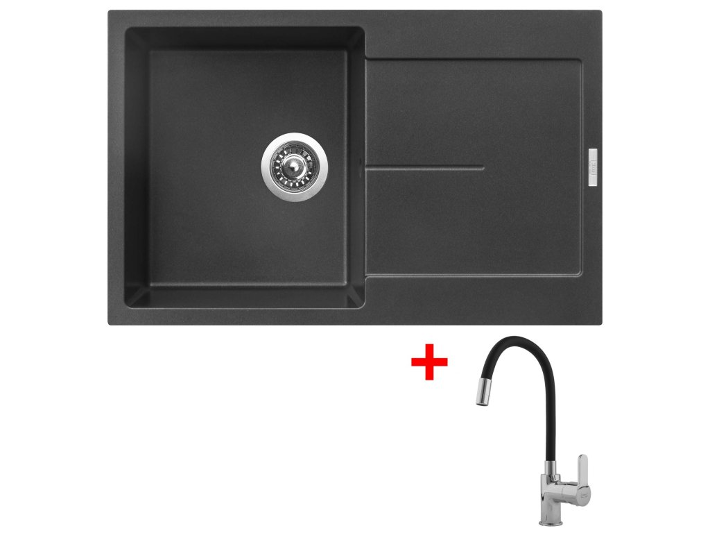 Granitový drez Sinks ULTIMA 790 Metalblack + drezová batéria FLEXIA