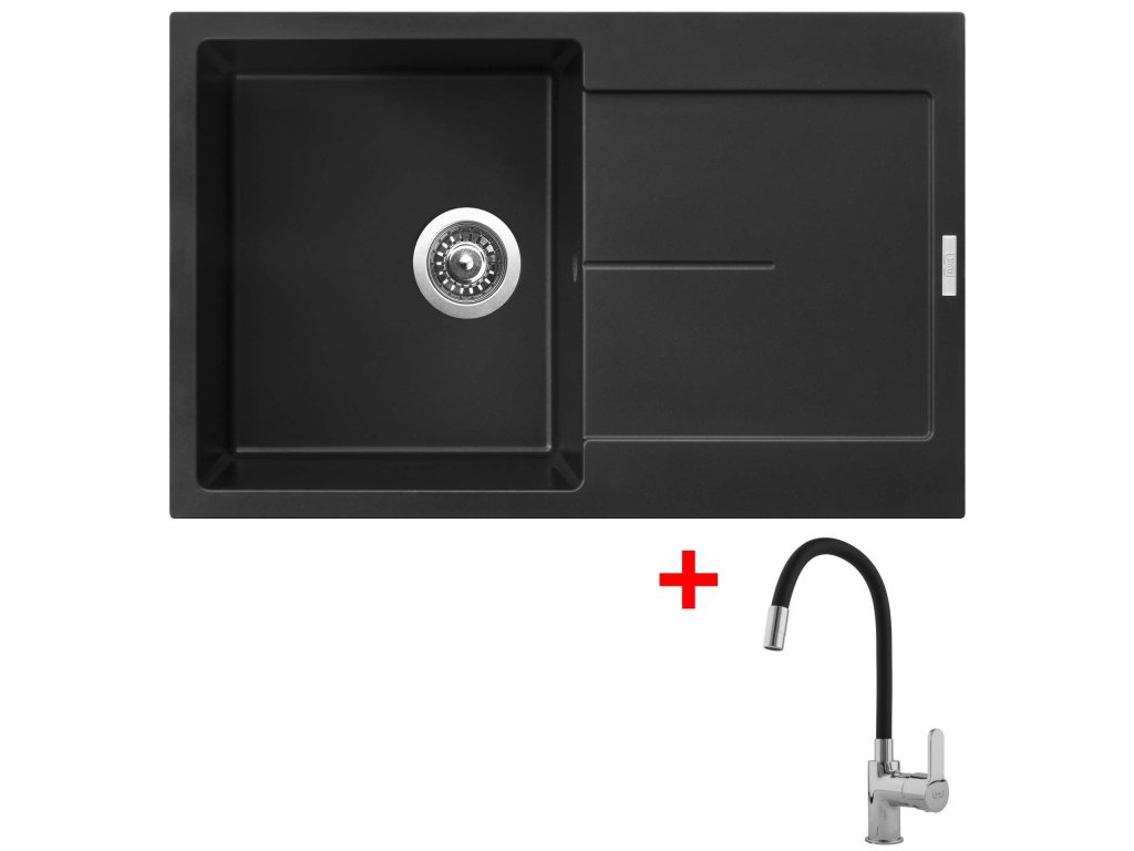 Granitový drez Sinks ULTIMA 790 Pureblack + drezová batéria FLEXIA