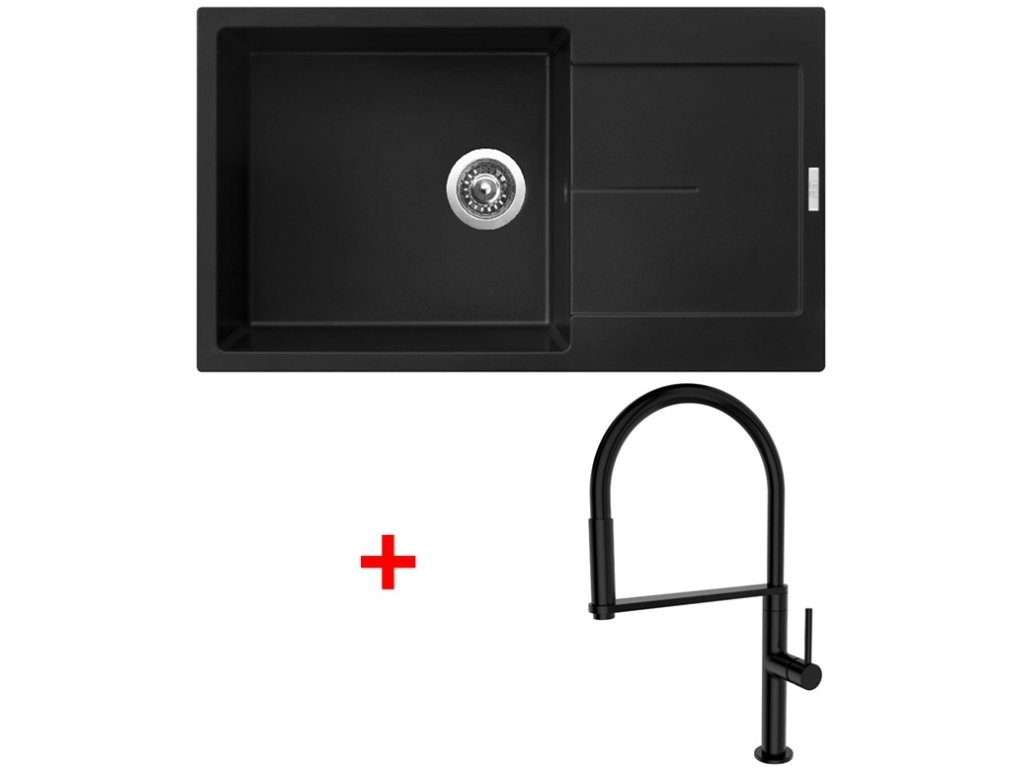 Granitový drez Sinks ULTIMA 860 XXL Pureblack +batéria COOK MATT BLACK