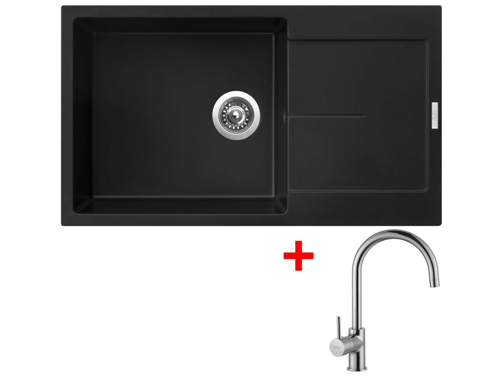 Granitový drez Sinks ULTIMA 860 XXL Pureblack + batéria VITALIA