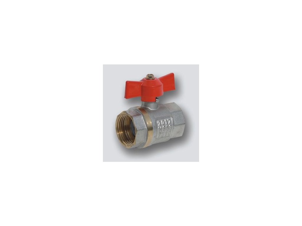 Guľový ventil FF, T s motýľom, 3/4" závit vnútorný/vnútorný MZ. S tesnením upchávkou.