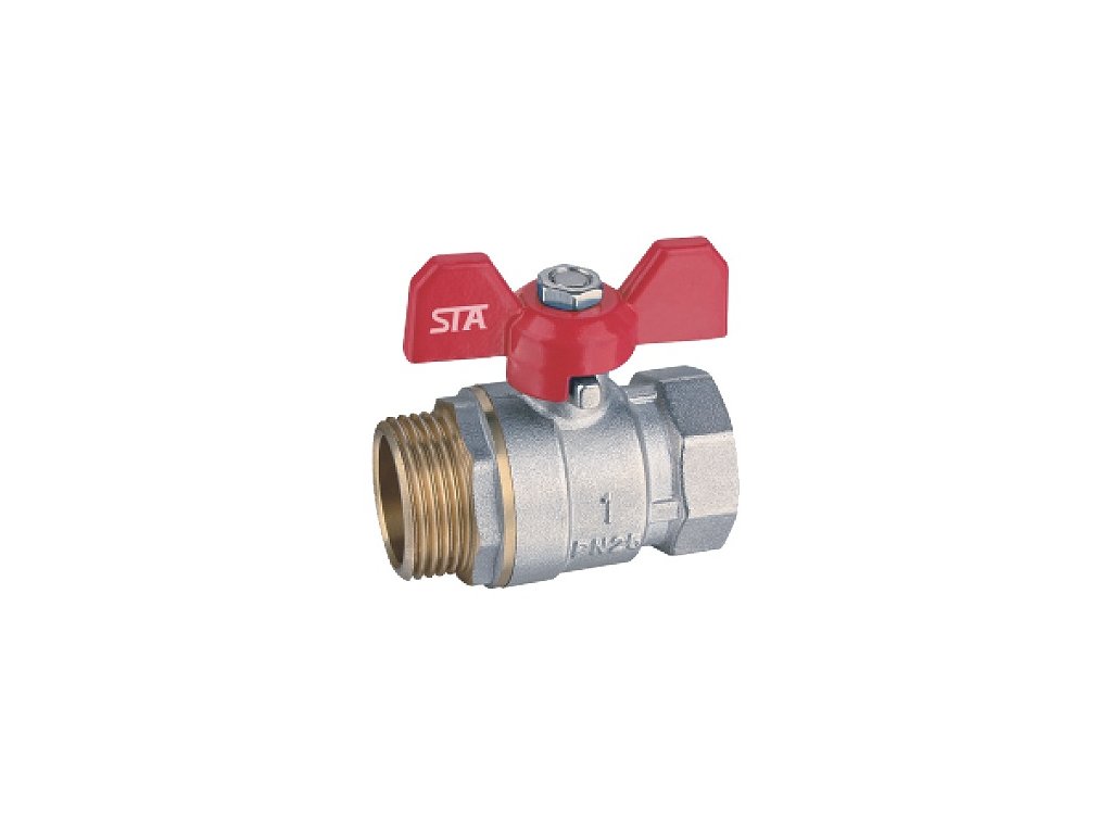Guľový ventil MF značky STA, s motýľom, PN25, certifikovaný na pitnú vodu: povrch prichádzajúci do kontaktu s pitnou vodou nie je poniklovaný.