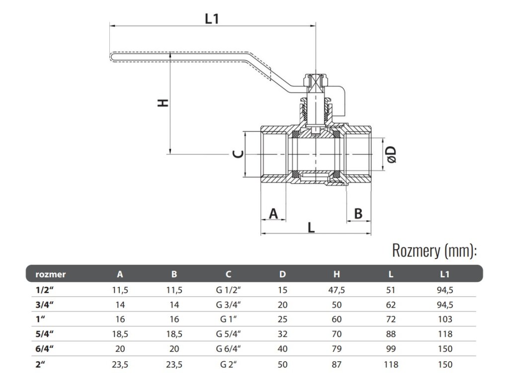 Guľový ventil s pákou, 2" FF závit vnútorný/vnútorný, PN40