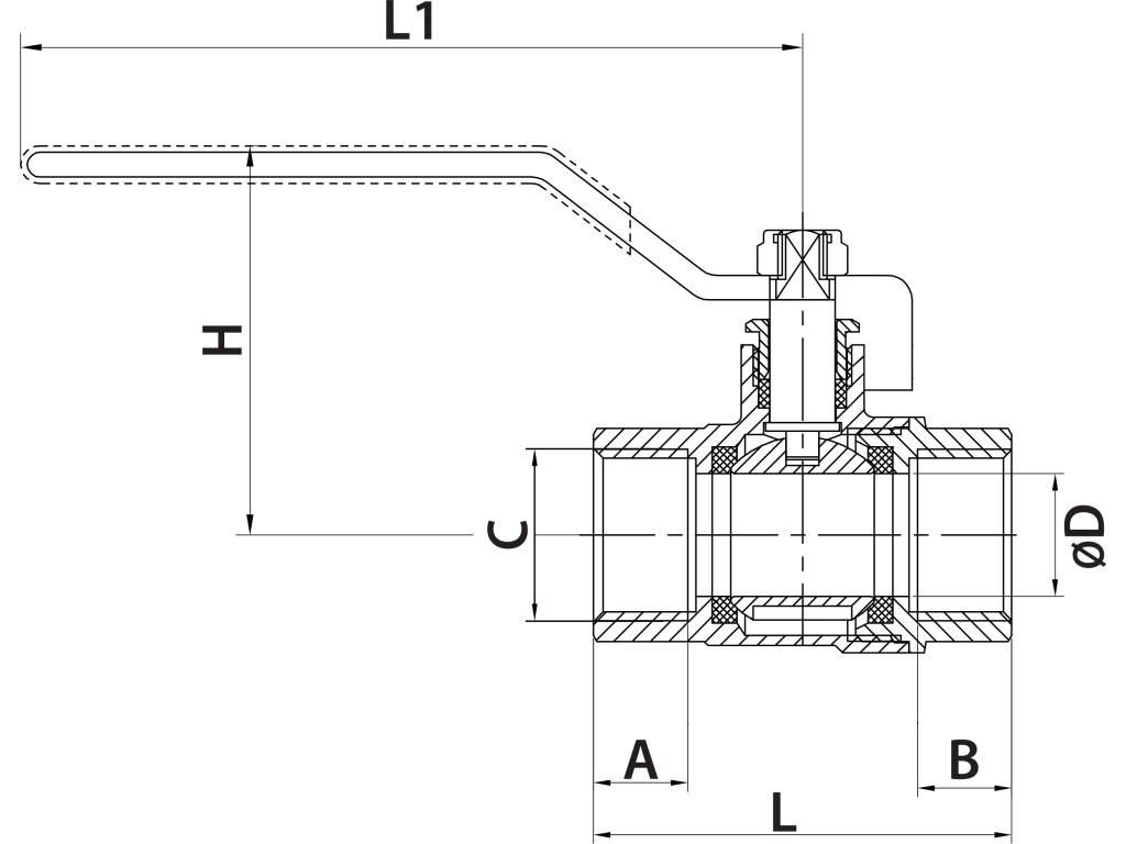 Guľový ventil FF značky STA, s pákou, PN40, certifikovaný na pitnú vodu: povrch prichádzajúci do kontaktu s pitnou vodou nie je poniklovaný.