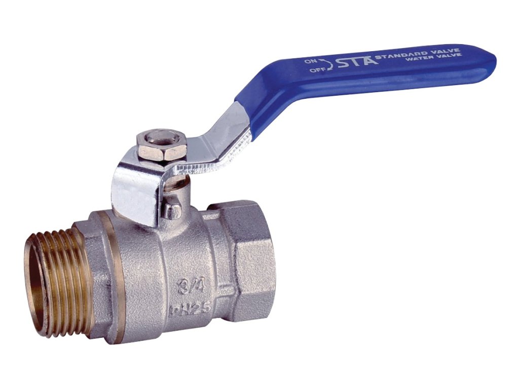 Guľový ventil MF značky STA, s pákou, PN25, certifikovaný na pitnú vodu: povrch prichádzajúci do kontaktu s pitnou vodou nie je poniklovaný.