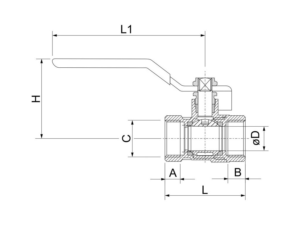 Guľový ventil s pákou, 6/4" FF závit vnútorný/vnútorný, PN25